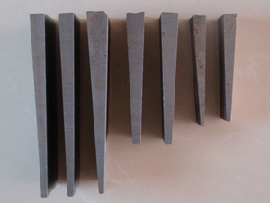 斜墊鐵主要用途:用于各種設(shè)備的水平和平行調(diào)整,使設(shè)備在運轉(zhuǎn)過程中不發(fā)生震動、傾斜,保證機(jī)器的良好運轉(zhuǎn),減少機(jī)器磨損,保證設(shè)備安全;特點是:使用簡單、方便、快捷、大多根據(jù)用戶的需要制造,按實際設(shè)備底座要求設(shè)計斜墊鐵圖紙,然后按圖紙加工制作 。
