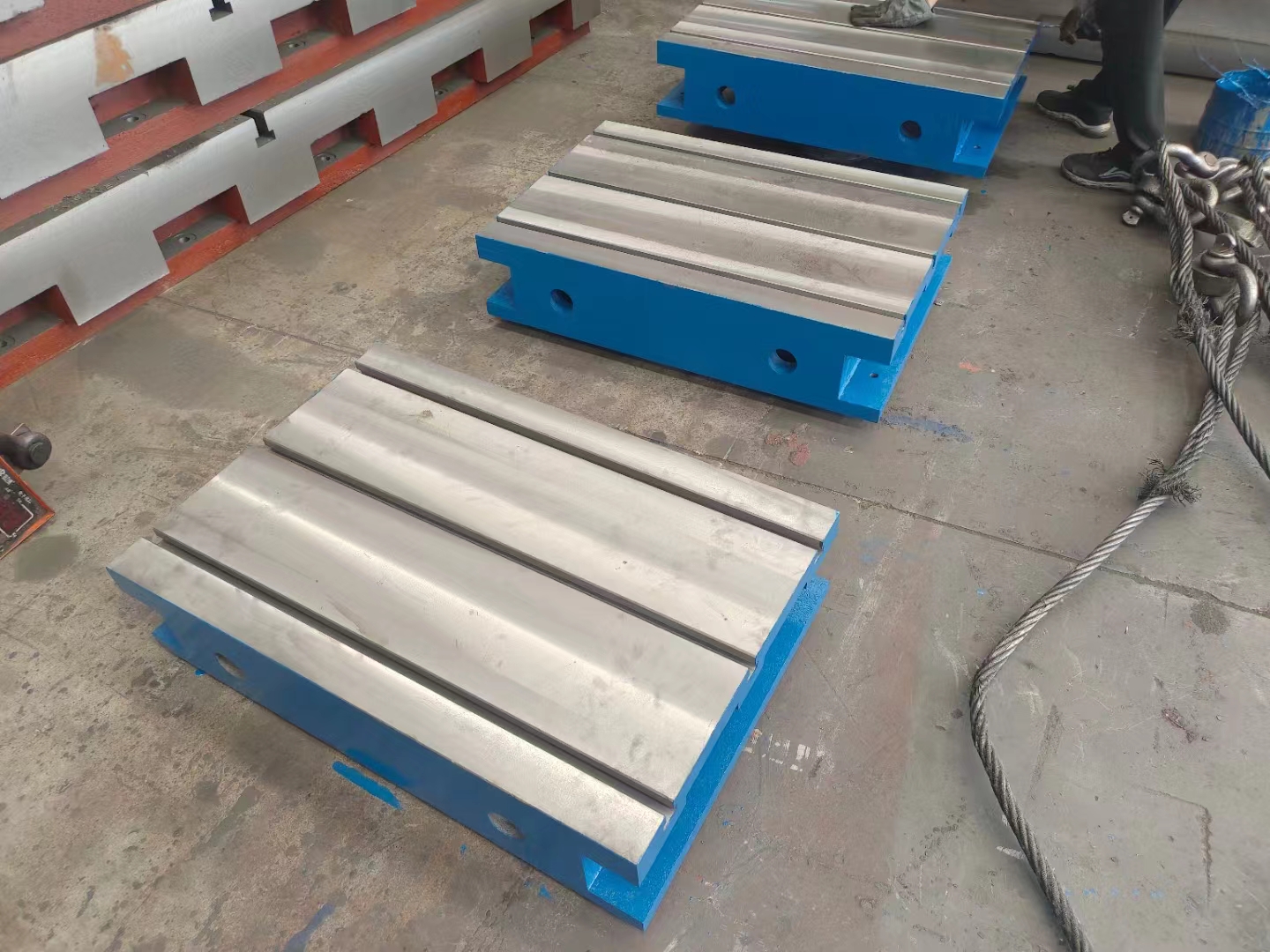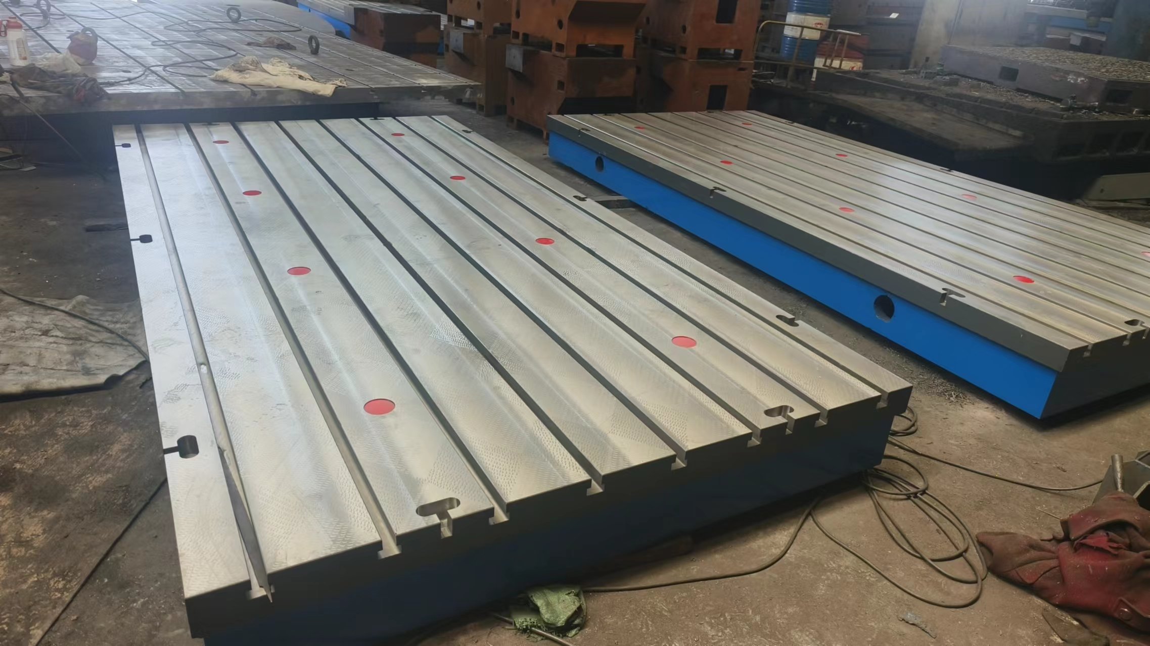 機(jī)床工作臺(tái)用途:主要用于機(jī)床加工工作平面使用,上面有孔和T型槽,用來(lái)固定工件,和清理加工時(shí)產(chǎn)生的鐵屑。按JB/T7974-99標(biāo)準(zhǔn)制造,產(chǎn)品制成筋板式和箱體式,工作面采用刮研工藝,工作面上可加工V形、T型、U型槽和圓孔、長(zhǎng)孔。